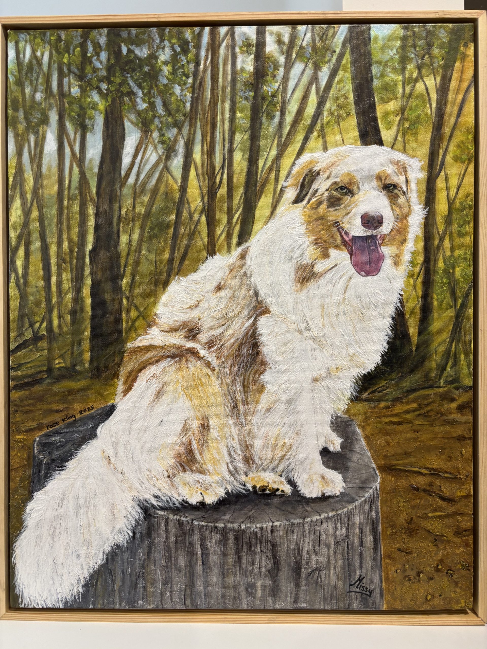 Missy was a surprise birthday gift for her owner, Ken, commissioned by his wife! A challenge to paint with such fluffy white fur – but her owner was very happy with Missy’s portrait!